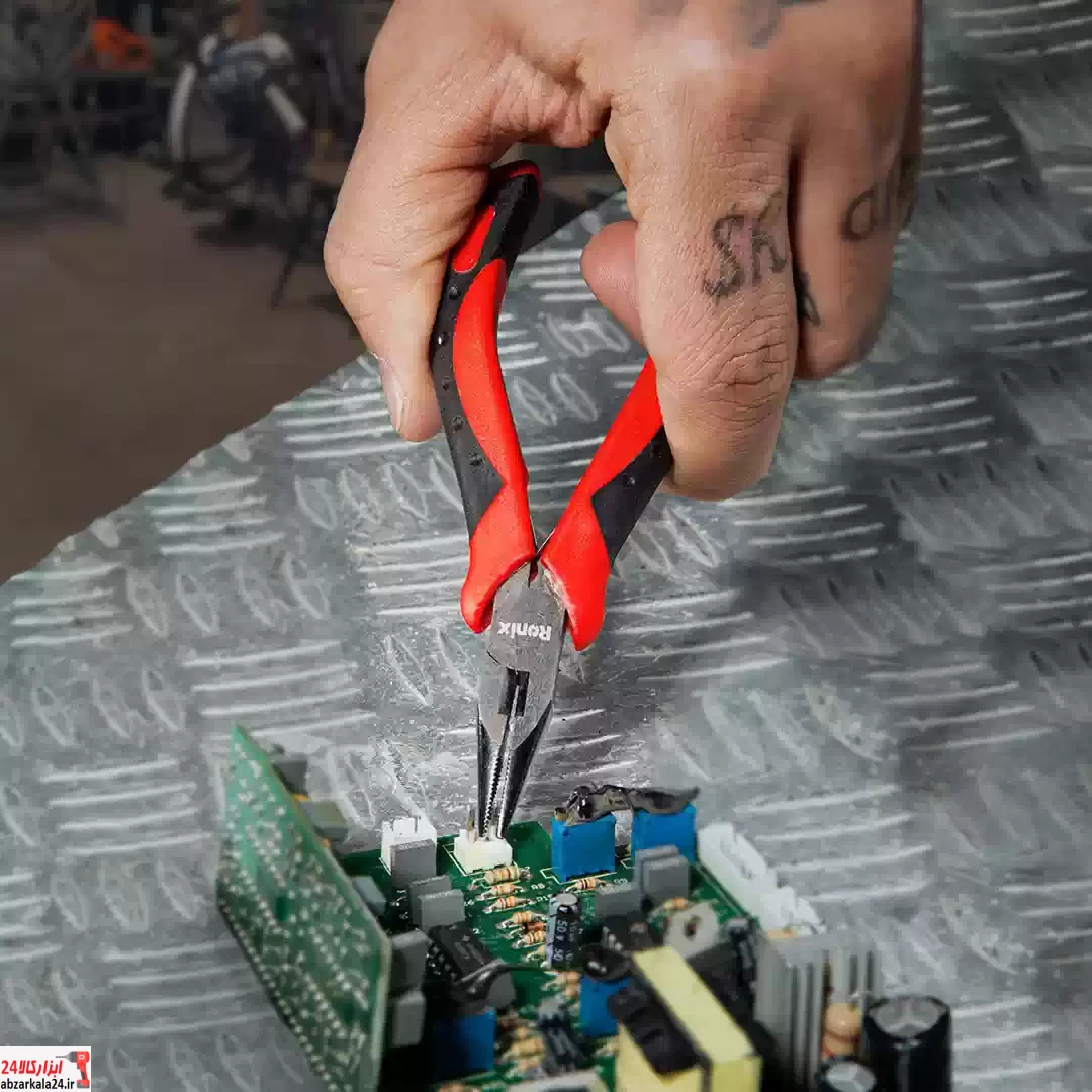 رونیکس، انواع دمباریک را مانند سایر ابزارآلات خود، با توجه به نیازهای متنوع مشتریان تولید و روانه بازار میکند. دمباریک الکترونیکی مینی رونیکس مدل RH-1304، یکی از محصولات این مجموعه است. فکهای سختکاریشده این انبر، مقاومت فوقالعادهای در برابر فشار، سایش و پیچش دارند.