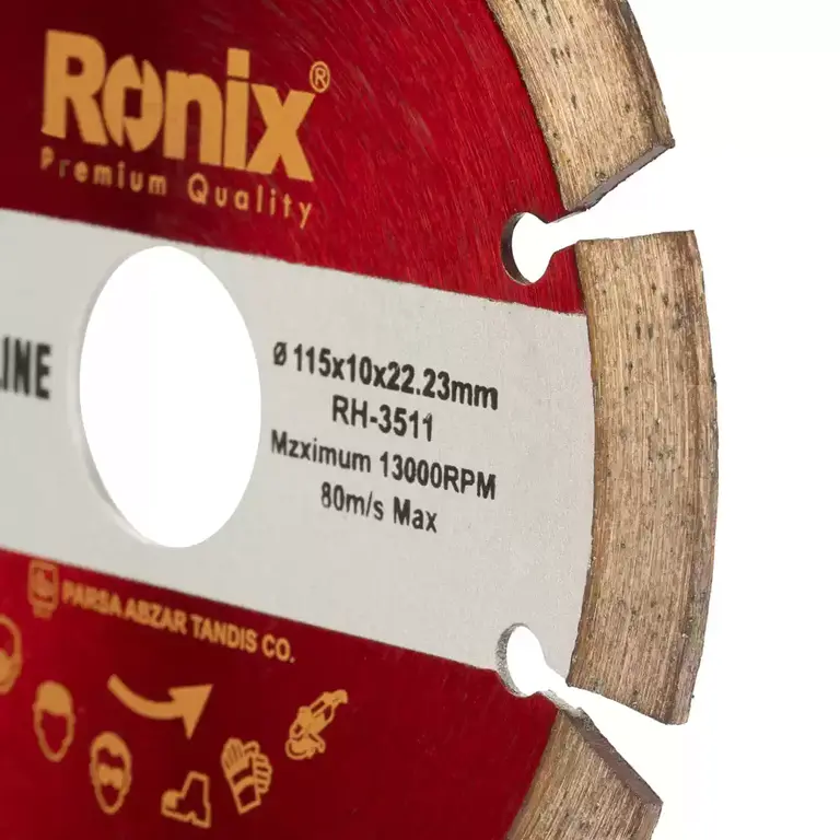 صفحه گرانیت‌بر 115 میلی متری رونیکس تحت عنوان کد محصول RH-3511، بر اساس استاندارد TUV (نظارت بر سلامت کالا برای محیط زیست) و CE اروپا ساخته‌شده است . این صفحه سنگ گرانیت‌بر با روش  cold pressتولید شده  که باعث بالا رفتن مقاومت آن در برابر فشار حاصل از کار بر سطوح متراکم می‌شود.