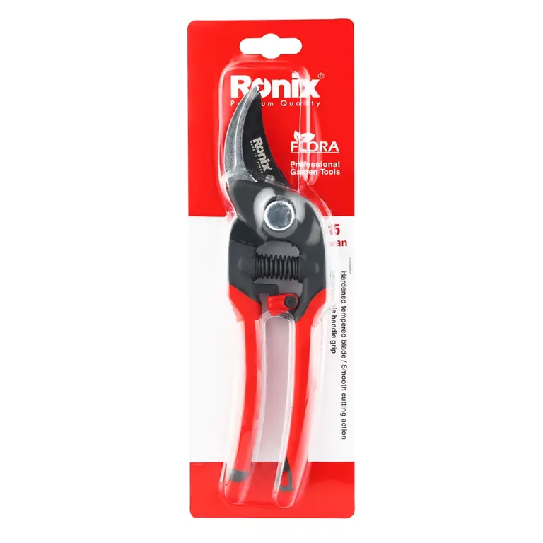 قیچی باغبانی فلورا رونیکس مدل RH-3105، ابزاری حرفه‌ای برای هرس شاخ و برگ درختان است. این ابزار باغبانی مجهز به تیغه‌های سخت‌کاری‌شده فولاد  SK-5با درصد کربن بالا، مقاوم به زنگ‌زدگی و روکش ضد چسبندگی است که برای برش‌های آسان طراحی شده‌اند. برای این قیچی باغبانی یک فنر مقاوم و در عین حال نرم تعبیه شده که پس از هر برش، لبه‌های قیچی را از هم باز می‌کند تا خستگی دست کاربر را به حداقل برساند.