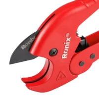تیغه این قیچی پیویسیبر رونیکس، قابل تعویض و از جنس فولاد با روکش تفلون است. این قیچی با ظرفیت برش لوله تا قطر بیرونی 42 میلیمتر، انواع لولههای PVC را برش میدهد. ضخامت تیغه این قیچی 2.5 میلیمتر و سختی آن HRC 55 است.